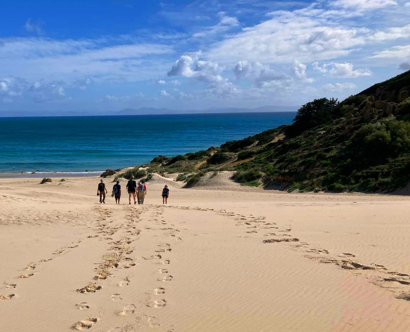 Today we will take you to Tarifa, where you will stay for the next two nights. Arriving in this white fishing village, you can start today’s walk directly from your new home. It is a beautiful linear route between Tarifa and the Guadalmesí Tower, passing the Colada de la Costa.It is not a beach walk, you walk a little higher, but you can occasionally descend to the coast for a swim.You are in the Natural Park of the Strait of Gibraltar, located between the two continents of Europe and Africa and between two seas; the Mediterranean Sea and the Atlantic Ocean. Morocco is only 14 km away from the Spanish coast; you can see the houses of Ceuta. We turn around at the Guadalmesi tower, but you can make this walk as long/short as you want.